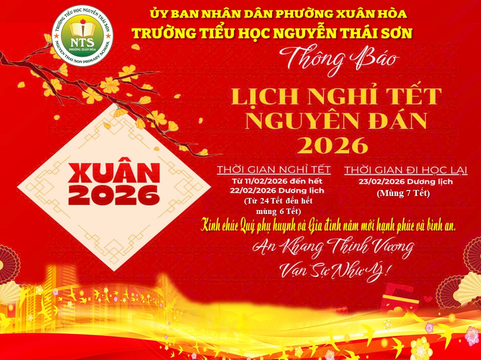 Thông báo, Tin tức sự kiện Lịch nghỉ Tết Nguyên đán Bính Ngọ – 2026 Posted on 11/02/202611/02/2026 by Admin Support 11 Th2 Kính chúc Quý Cha mẹ học sinh và gia đình An Khang Thịnh Vượng – Vạn Sự Như Ý Admin Support Thực đơn bán trú – Tuần lễ từ 09/02 đến 10/02/2026 Thực đơn bán trú – Tuần lễ từ 23/02 đến 27/02/2026